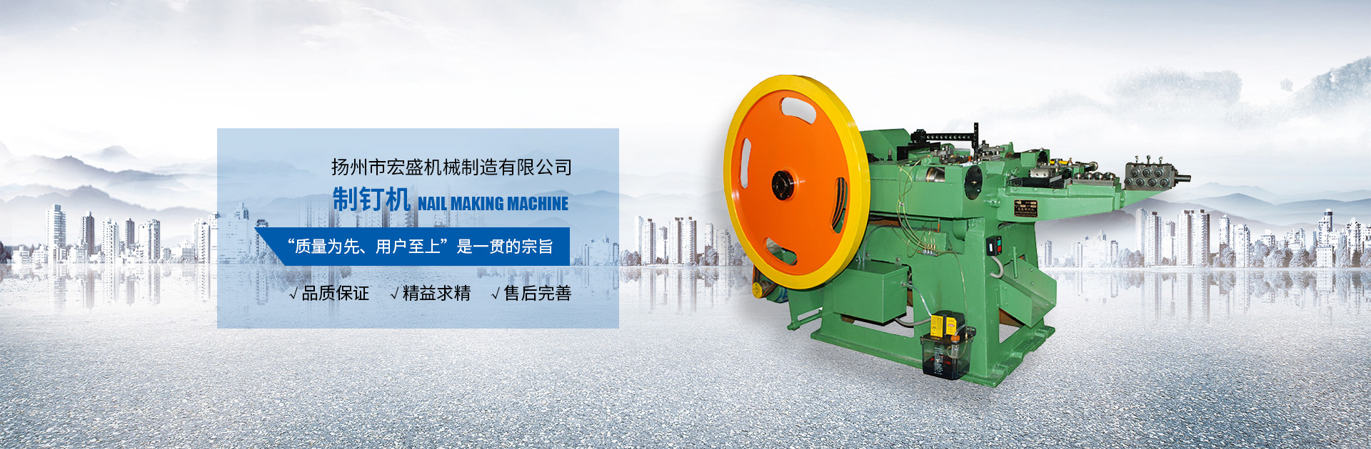 揚(yáng)州市宏盛機(jī)械制造有限公司是具有20多年歷史生產(chǎn)制釘機(jī)系列的企業(yè),技術(shù)力量雄厚,生產(chǎn)設(shè)備齊全、質(zhì)量?jī)?yōu)質(zhì)、服務(wù)周到、價(jià)格適中、工藝精湛,本公司生產(chǎn)的HZD系列制釘機(jī)產(chǎn)品覆蓋國(guó)內(nèi)外20多個(gè)省市自治區(qū),外銷東南亞等諸多國(guó)家和地區(qū),是全國(guó)同行業(yè)內(nèi)的優(yōu)質(zhì)產(chǎn)品,并得到用戶認(rèn)可。歡迎諸位新老客戶光臨我公司選用產(chǎn)品!